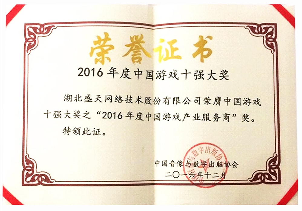 2016年度中国游戏十强