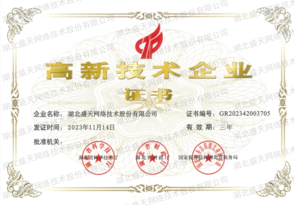 高新技术企业证书
