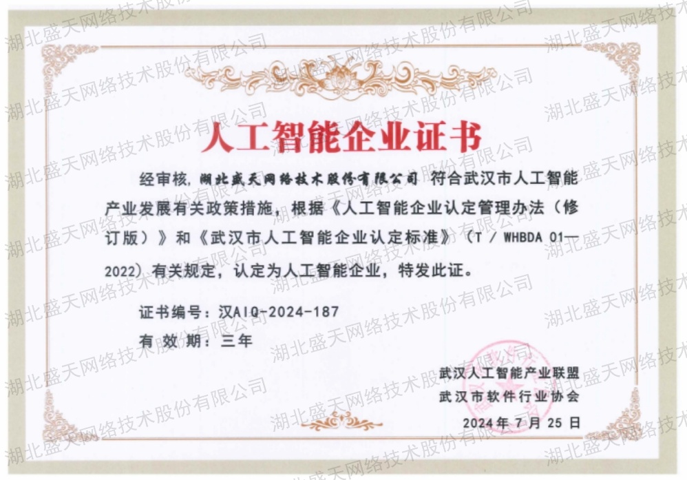 人工智能企业证书