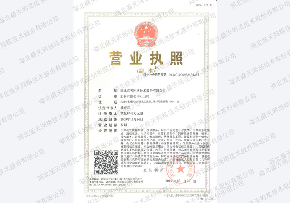 盛天网络营业执照